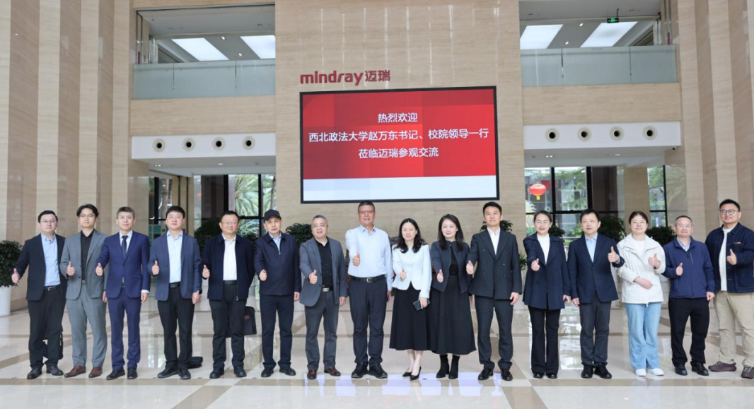 赵万东书记一行参观了迈瑞医疗展厅,详细了解公司发展历程及智慧急救、监护设备、创新影像等前沿医疗科技成果。2005级校友孙扬在座谈中分享了自己从事医疗行业的历程,并介绍了迈瑞医疗的发展战略与行业地位。双方还就AI技术对医疗器械行业的影响、先进医疗技术对人类寿命的提升等议题进行了深入探讨。学校领导对西北政法大学校友跨界发展、快速转型并取得优异成绩表示祝贺,这充分体现了学校对人才综合能力培养的重要性。